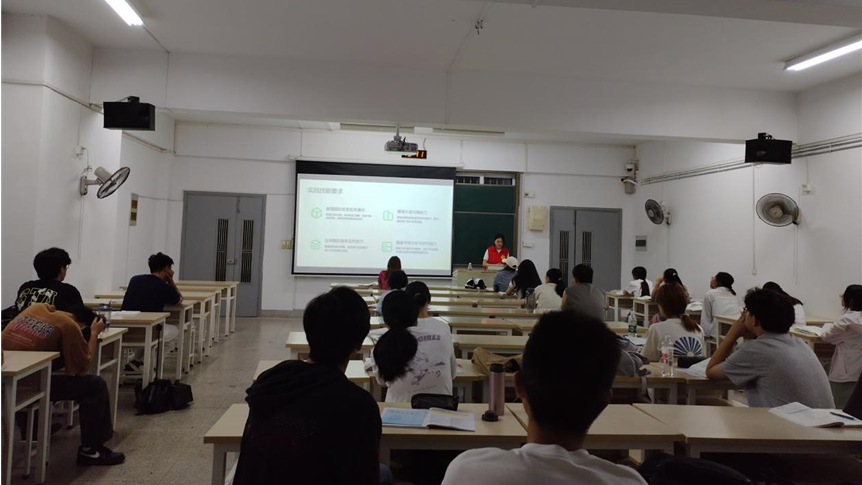 宣讲会伊始,学生国贸党支部成员以“专业未来就业方向”为引,开启了职业生涯规划的分享。结合国贸与电商专业的行业发展趋势,支部成员通过专业就业市场分析,从职业路径规划、大学学习规划建议两个维度,为新生梳理了大学四年的成长路径。“大一打基础、大二定方向、大三强实践、大四稳输出”的阶段性规划建议。其中,支部成员就考研道路规划进行重点讲解,使同学们对考研有了全新的认知。