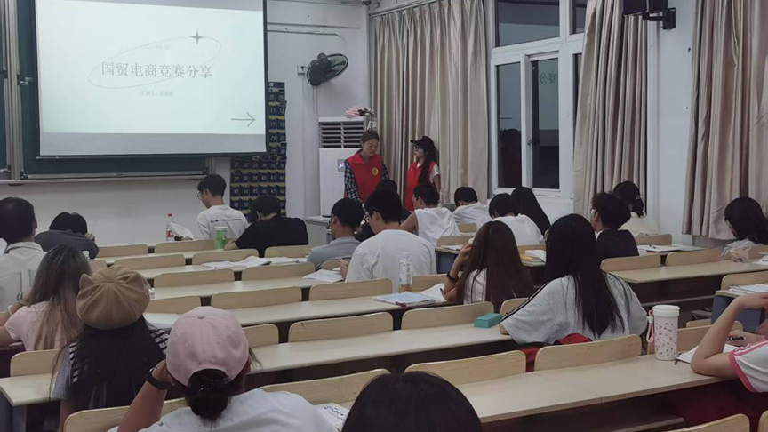 学科竞赛宣讲则点燃了新生们的热情。支部成员详细列举了适合国贸与电商专业参与的竞赛,如“互联网+”大学生创新创业大赛、全国大学生电子商务“创新、创意及创业”挑战赛等,并拆解了备赛流程、组队技巧及获奖对升学就业的加分作用。“竞赛不仅是拿奖,更是将课本知识转化为实战能力的最佳舞台”,支部成员的分享让新生们跃跃欲试,提高了新生们对商学院竞赛的关注度。
