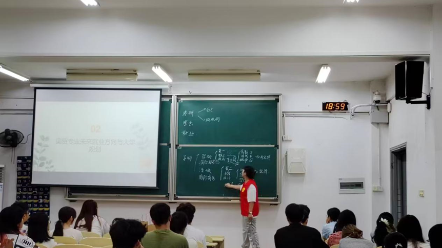 为帮助2025级新生快速适应大学生活,明确学业与发展方向,9月25日晚,商学院学生国贸党支部在教学楼自习教室,面向国贸及电商专业五个班级的新生,开展了一场主题鲜明、内容详实的学业规划宣讲会。党支部成员通过模块化讲解,为新生们带来了涵盖职业生涯、社团选择、竞赛参与及关键证书备考的全方位指导。