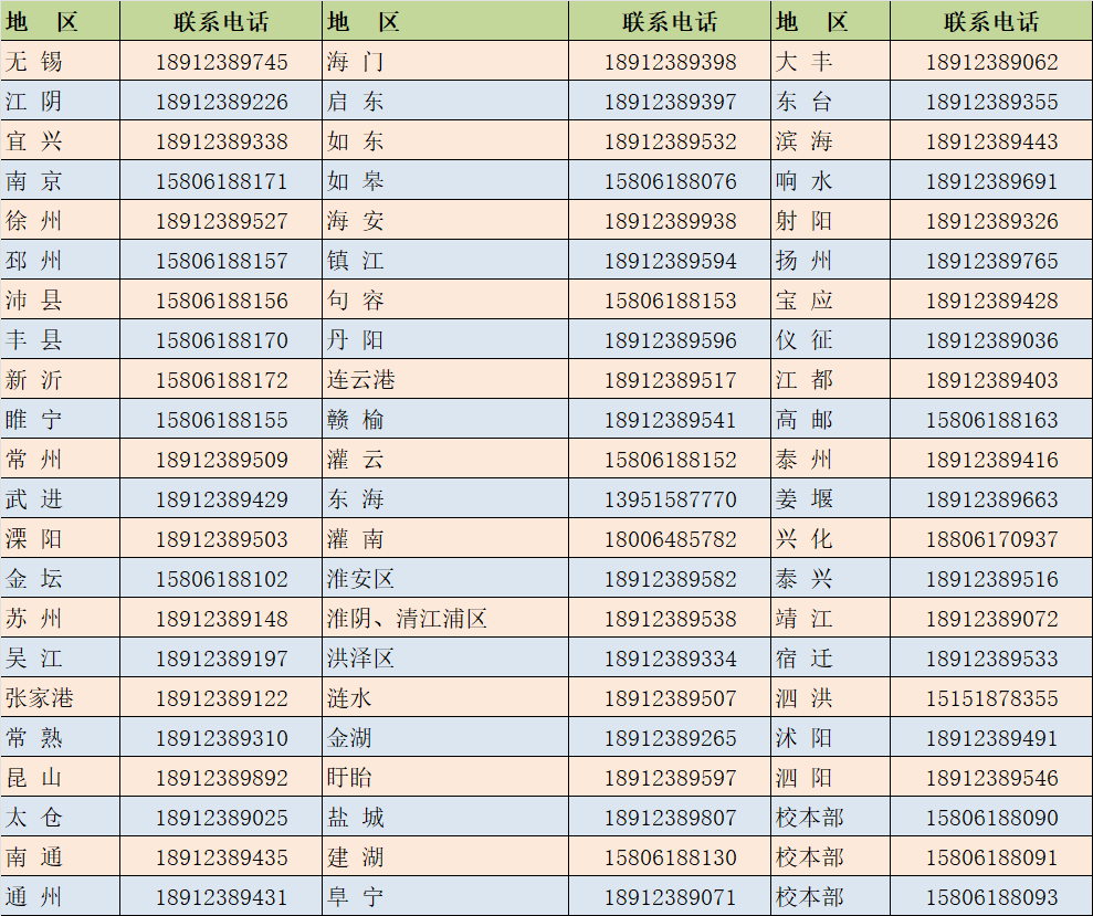 2024年招生江苏省各地区招生咨询电话