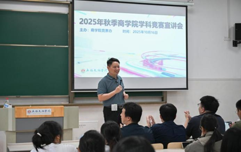 近日,由商学院主办的“2025年秋季学科竞赛宣讲会”于商科楼B106与108教室顺利举行,标志着三大赛事的正式启动,分别为:全国高校商业精英挑战赛品牌策划竞赛校赛、“正大杯”全国大学生市场调研大赛校赛,以及“挑战杯”中国大学生创业计划竞赛院赛。本次活动吸引了约三百余名师生及企业代表到场,现场座无虚席,师生参赛热情高涨,气氛热烈。