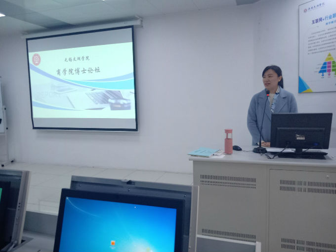 论坛开始,陈倩副院长讲述了无锡太湖学院在评估过后就着手申报硕博点,因此学校就需要更多的博士生老师。另外,她表示国内外都很重视产业经济学,对其研究维持在相当高的水平,希望通过本次博士论坛,在场的所有教师可以对于这方面可以多加关注以及进行相关的学习。此外,学校希望商学院的教师对研究课题报告的投稿量及中标率有一定的提高,进而提高学校的教学素质。接下来她便请四位博士在读教师进行发言。