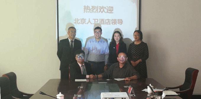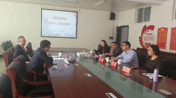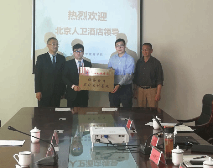 2019年4月24日上午,我校商学院与北京人卫酒店校企合作座谈会在商学院301会议室举行,北京人卫大厦有限公司执行董事、常务副总经理孙彦涛和北京人卫酒店人力资源总监李京、我校陈鹏飞副校长,商学院院长徐立青、旅游管理系主任许沁乔、学科带头人李光宇教授和教师代表潘云等出席座谈会。座谈会上,徐立青院长首先介绍了商学院的基本情况和旅游管理专业情况,重点介绍了旅游管理系师资队伍、人才培养与特色。许沁乔主任以人才培养为例,希望北京人卫酒店能与我校建立紧密的校企合作关系,为学生提供长期的就业实习机会。北京人卫大厦有限公司的执行董事孙彦涛详细介绍了该酒店的概况以及主要经营业务。北京人卫酒店的人力资源总监李京围绕实习生的岗位以及医康养护教课题研究进行了深入的座谈与交流。李光宇教授重点围绕员工的外派培训等相关事宜,畅谈了自己想法。