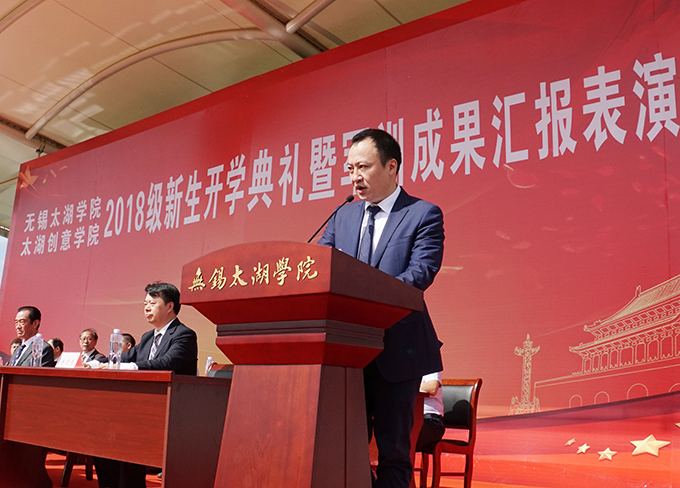 本网讯 9月25日上午,无锡太湖学院北区运动场上青春洋溢,激情飞扬,2018级新生开学典礼暨军训成果汇报表演大会在这里隆重举行。学校党委书记金秋萍,驻锡某部首长凌新波,校领导何宏金、王心如、金成、丁涛、陈鹏飞、陈晓东在大会主席台前排就座,学校各二级学院、职能部门负责人以及2018级全体新生、军训教官出席大会,大会由党委副书记丁涛主持。