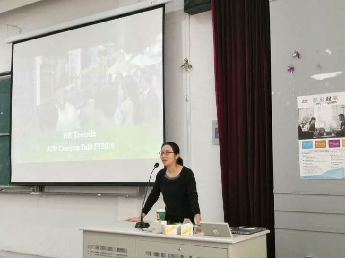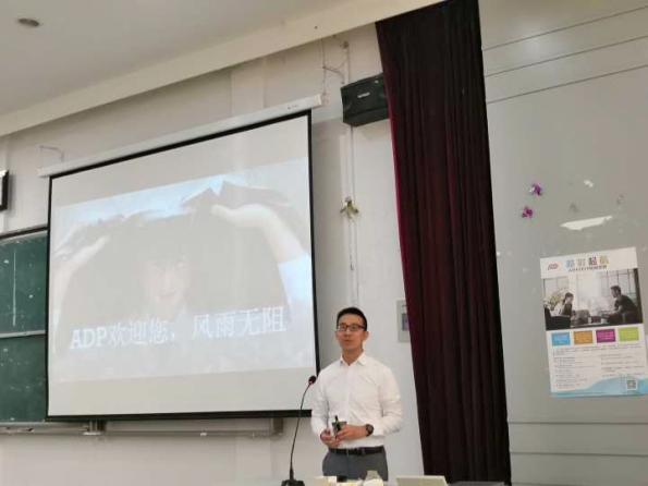2018年10月10日15:30在教学楼4-D151举行了ADP 2019校园招聘宣讲会。本次招聘宣讲会由无锡太湖学院商学院和ADP联合举办,出席本次招聘会的有ADP人力资源部资深主管及相关部门的4位招聘负责人,无锡太湖学院商学院人力资源管理系主任夏韡,15级人力资源管理专业应届毕业生。
