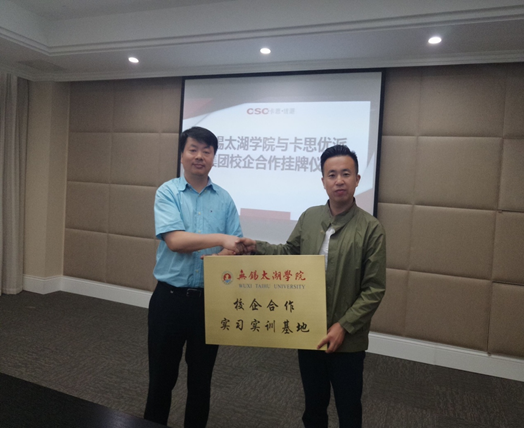 6月26日上午,无锡太湖学院校长助理陈晓东、无锡商学院院长徐立青、无锡商学院副院长陈倩携人力资源管理专业相关教师一行参加了无锡太湖学院与卡思优派集团校企合作挂牌仪式。双方签署了校企合作协议并就将来在产学研领域的相关合作达成共识。陈晓东校长助理、徐立青院长及卡思优派人力资源集团创始人魏亮先生在签约仪式上发表讲话。