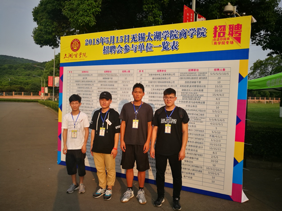 我们在游走于招聘会现场时,发现有个招聘单位是太湖学院的学长创立的,几个大四的学长、学姐作为工作人员来招聘,所以……