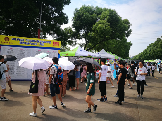 筹备多日的无锡太湖学院商学院专场招聘会于2018年5月15日八点在六号楼前正式开始。在这之前,志愿者们纷纷在七点半之前到达会场,做好了一切准备工作,随后招聘单位的工作人员陆续进场。