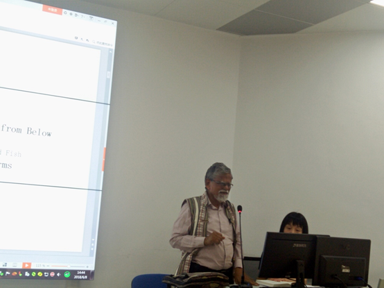 在莫罕迪教授做学术报告之前,徐院长先介绍了印度社会发展现状以及本次邀请到的莫罕迪教授及其夫人。随后莫罕迪教授将中国的转型分为:1.中国改革:回顾与展望;2.国家与政党:改革的序幕;3.对人的影响。莫罕迪教授带来了一本他新著的书,里边是凝聚了他四十年对中国改革开放的研究成果,其中就涉及了滨湖区改革开放后的面貌变化。谈到第二部分时,教授认为中国在改革开放中制定的相关法律、法规是对那时期有支持作用的。但从最高层面制定有丝毫错误的或者说成功带来的很小的负面因素在基层角度是很难去纠正的。第三部分,教授认为工人、农民是被影响程度最深的团体,其中乡镇企业的发展对农民以及工人的影响是起到积极作用的,他还提到在改革开放进程中女性也是受到很大的影响,包括在家庭、教育以及社会地位方面都发生了或大或小的变化。