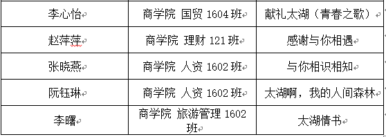 无锡太湖学院“我与太湖学院共成长”主题征文比赛获奖者名单